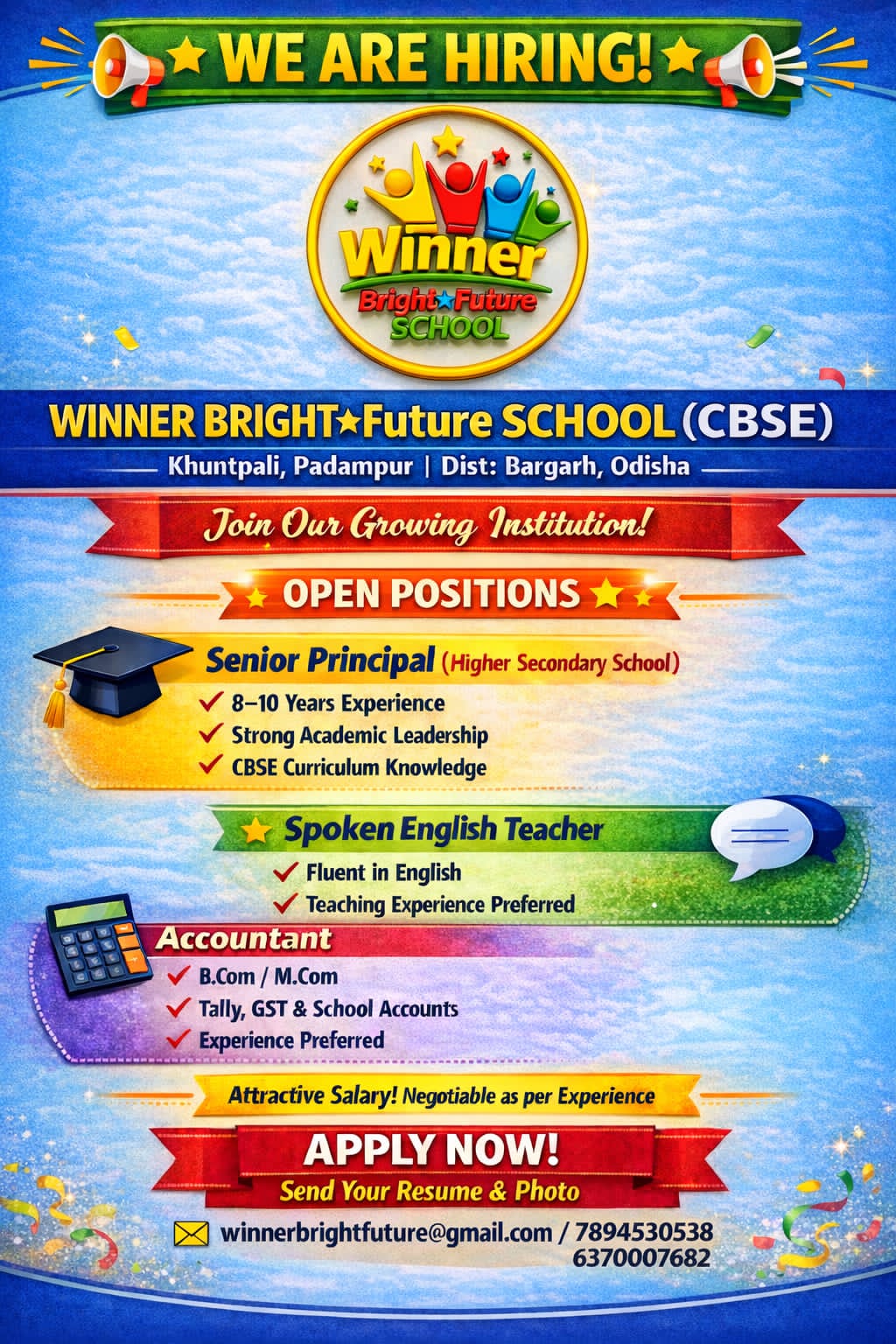 Apply Now: winnersbrightfuture@gmail.com
